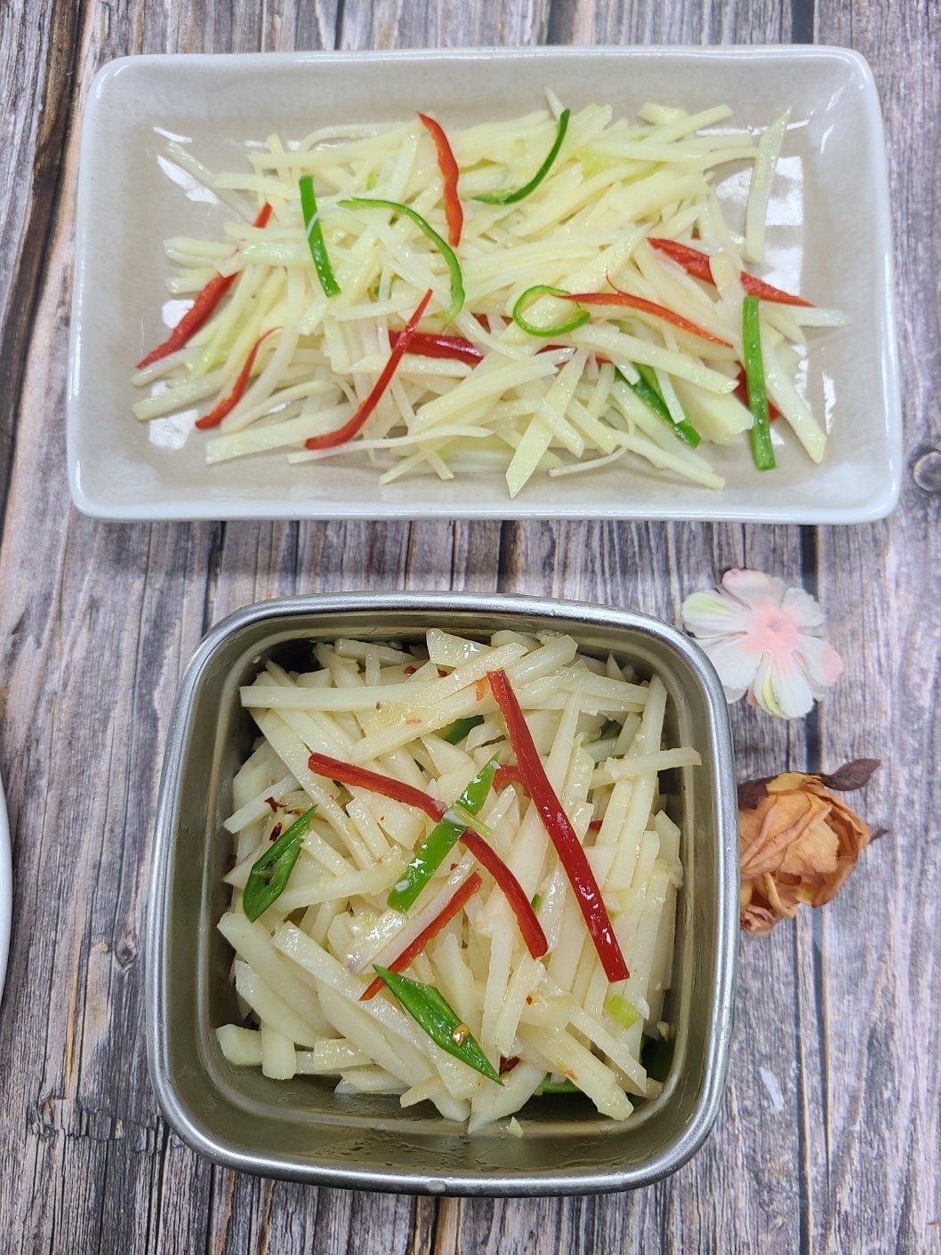 오늘은 담백하면서도 매콤한 감자채 무침 레시피와 요리 꿀팁을 소개했어요.
