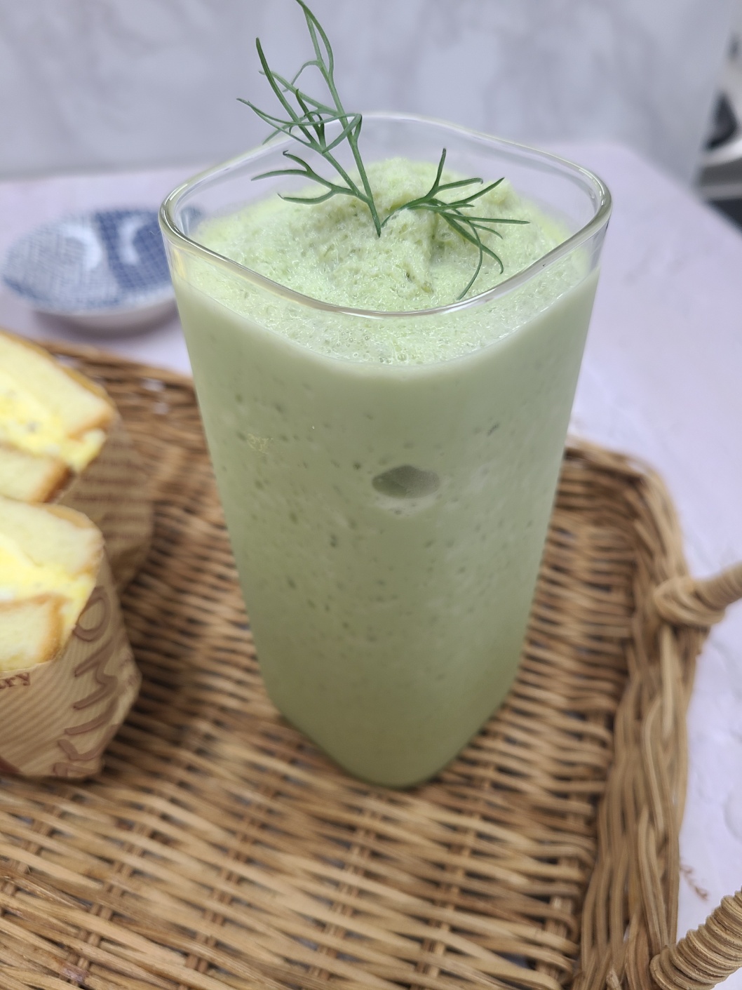 - 말차스무디 (말차100%, 우유, 아이스크림, 얼음을 넣어서 에그샌드위치랑 같이 만들어보았습니다)