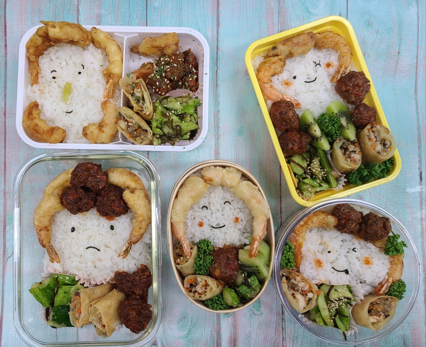 🍤 새우튀김 도시락 만들기 – 오이탕탕이부터 춘권튀김까지, 알차고 예쁜 캐릭터 도시락 레시피