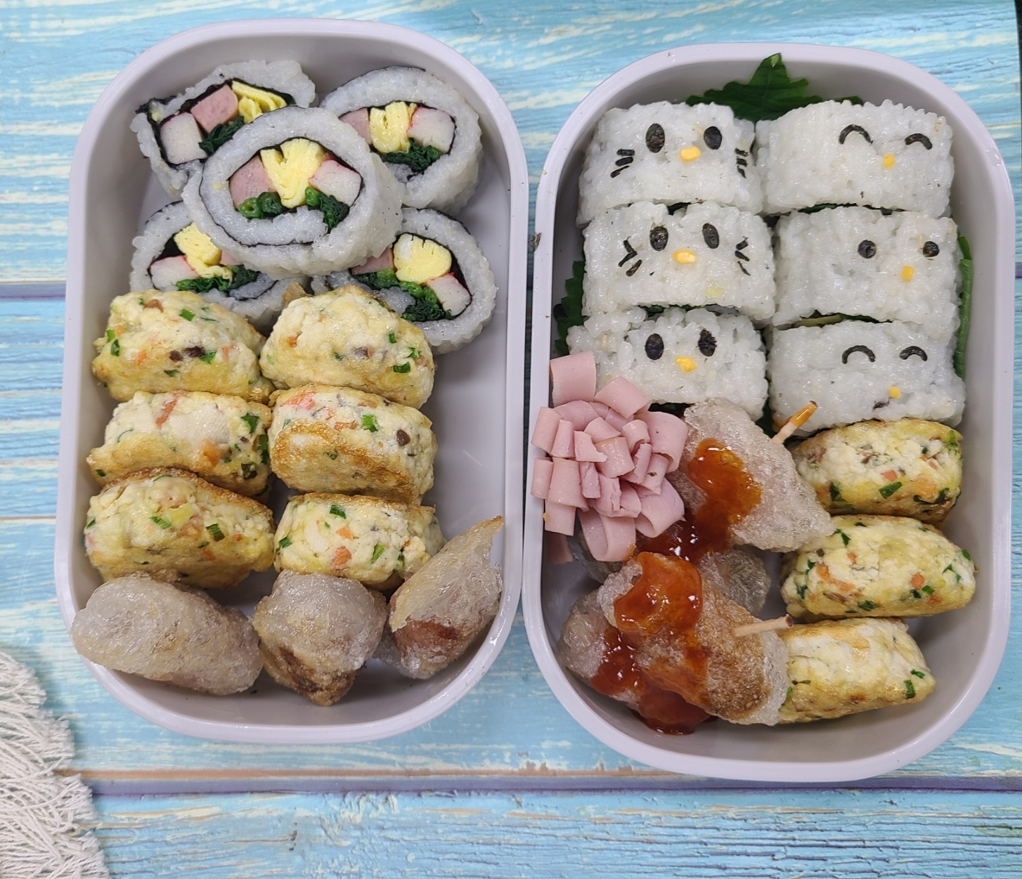 ✨ 오늘의 캐릭터 도시락 만들기 – 누드김밥, 두부 동그랑땡, 소떡소떡
