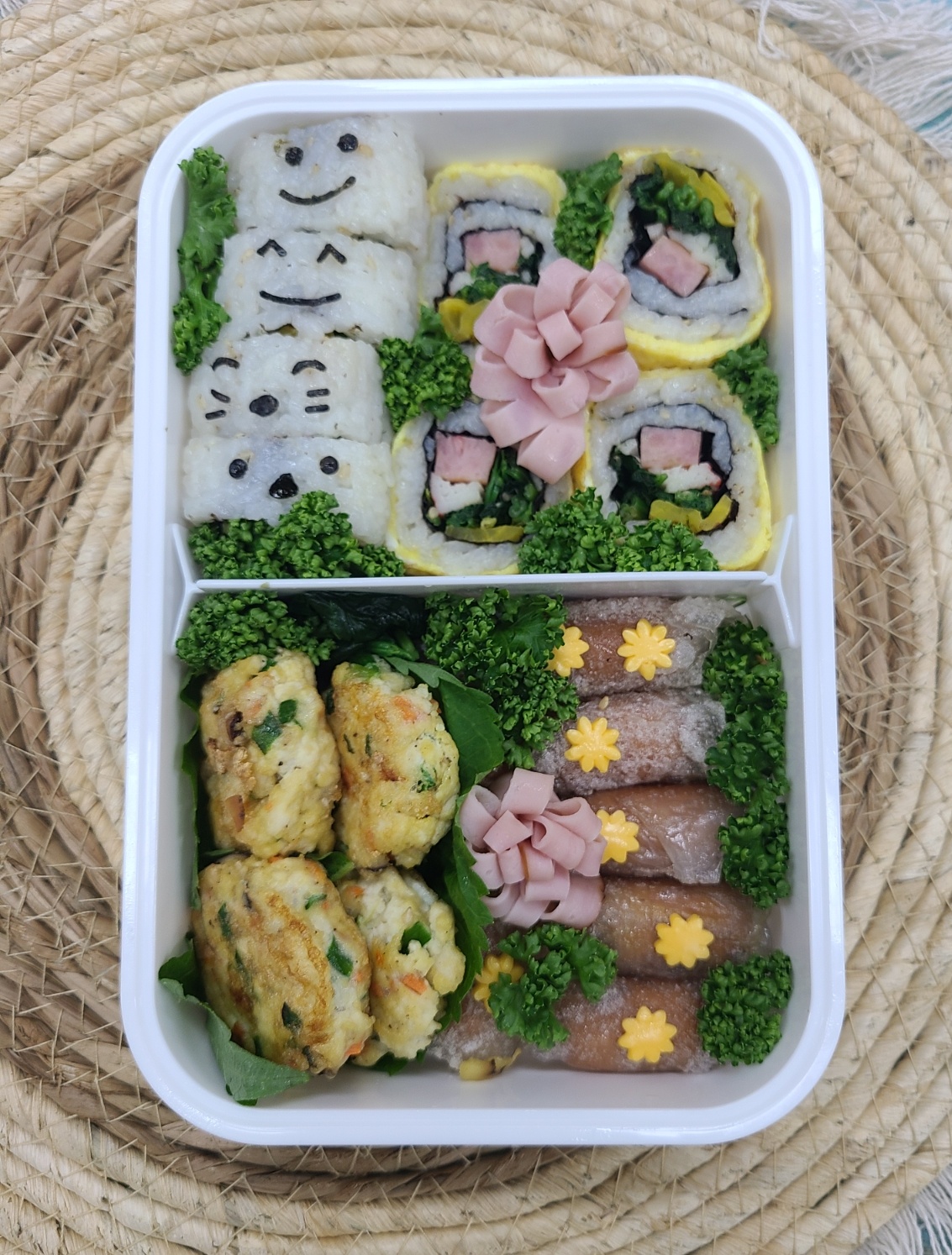 오늘은 누드김밥, 두부 동그랑땡, 소떡소떡으로 귀엽고 알찬 캐릭터 도시락을 만들어 봤어요. 만드는 과정은 어렵지 않지만, 하나하나 정성을 담다 보면 정말 예쁘고 맛있는 도시락이 완성돼요.
