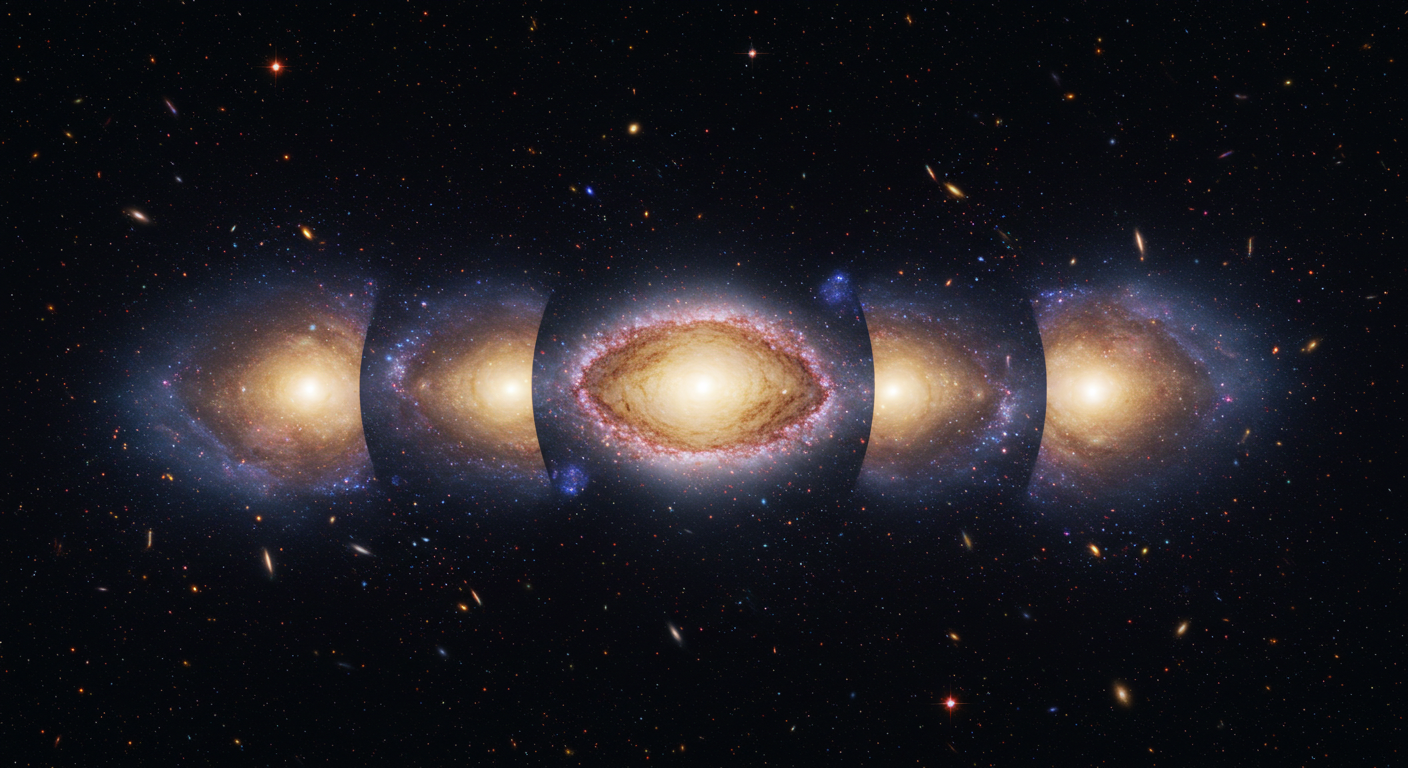 1915년, 알베르트 아인슈타인은 일반 상대성 이론을 발표하며 획기적인 주장을 펼쳤습니다. "질량이 있는 물체는 주변의 시공간을 휘게 한다. 그리고 빛은 이 휘어진 시공간을 따라 직진한다." 이 말은 곧, 거대한 질량을 가진 천체(예: 은하, 은하단)가 렌즈처럼 작용하여 뒤쪽의 천체에서 오는 빛을 휘게 만들고, 그 빛이 여러 경로를 거쳐 우리에게 도달할 수 있다는 것을 의미합니다.
