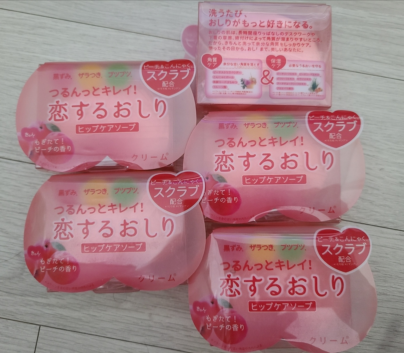 일본에는 여러 브랜드의 힙 케어 비누가 있는데, 제가 복숭아 비누를 좋아하는 이유는 바로 향과 촉촉함이에요.